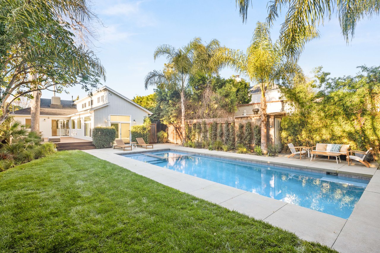 Discover a hidden gem on Preston Way. This renovated 3-bed, 2-bath sanctuary offers 1,600sf of luxury living plus a bonus room/office in the converted garage. Situated on a huge 7,960sf lot, enjoy privacy, lush landscapes and expansion potential. Dream backyard features a 1,000sf redwood deck, grassy yard, and a captivating pool/spa with automatic cover. The house is set back with a stunning front yard, creating an inviting atmosphere. Inside, a spacious living/dining area flows into a chef's dream kitchen. A private guest bedroom with a remodeled bath, and the rear of the house features two bedrooms, including a primary suite with vaulted ceilings, remodeled bath and walk in closet. An additional 400sf converted garage serves as a flex space for an office, gym, or playroom. Walk to Penmar Park and eateries on Rose Avenue, with Abbott Kinney and the beach just a quick bike ride away.
