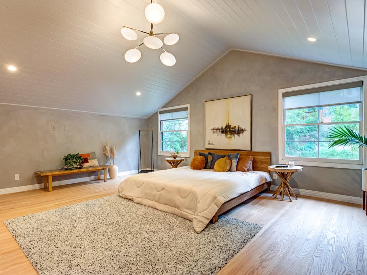 Standing tall in the heart of Bronson Canyon this reimagined tour de force boasts 4 bedrooms, including a large guest suite with kitchenette, full bathroom with private entrance, as well as a huge bonus room, gorgeous pool & spa with custom Ipe wood deck, private French Country style backyard, gourmet chef’s kitchen, open floor concept, fireplace, light filled dining room, two inviting living rooms with an original built in bar. The large bonus room with separate entrances is ideal for a gym, media room, recording studio or game room. This home will take your breath away with its custom and unique one-of-a-kind finishes painstakingly curated from antique stores and flee markets. Each sun filled bedroom is inspiring, and will make your imagination soar with possibilities. The ensuite master bedroom sits elegantly on the entire upper floor making you feel like you’ve arrived: walk-in closet and sexy luxurious bathroom where no detail has been spared. Steps away from the shops in Franklin Village, and a short walk to Bronson Canyon Park, this elegant, relaxed, inviting home is a slice of perfection powered by the sun. Watch great video & walk through video.
