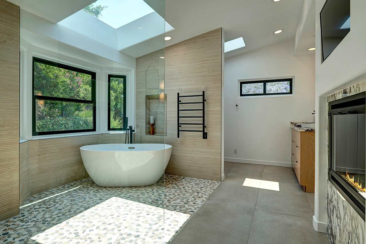 Sexy, Stylish, Spacious, Secluded, Superbly remodeled 3 bedroom modern home // Embrace the inviting elegance and privacy of this stunning, reimagined, split-level tour de force home nestled in the secluded hills of the Cahuenga Pass and Hollywood Hills. Nothing was spared to bring this Architectural Digest ready home to market. At nearly 2300sf the home's flowing open floor plan creates a sense of spaciousness perfect for both relaxation and entertaining. The heart of this light filled home is the open kitchen purveyed with only the most high end appliances: Wolf range oven, Thermador fridge and microwave, porcelain countertops all designed to heighten the art of entertaining. Newly installed Baltic Oak Harwood wide-plank floors throughout the home seamlessly connect the rest of the house. Gather around the kitchen island and dining room with friends and family for cheerful meals, laughter, the aroma of culinary delights, and music from the newly installed Sonos system. The inside/outside flow from the kitchen to the yard is effortless because of the Fleetwood sliding doors that tuck away into the wall leaving not a hint of where the kitchen ends and outdoor garden begins. Lounging around outside, you are taken aback by the absence of ambient sounds other than birds and swaying trees. // Step into the large living room designed for Vogue shoots, complete with stylish fireplace and large windows that frame the tree tops of the forested hills, an ideal spot for romantic evening or to curl up with your favorite book. Adjacent to the living room and kitchen are three breezy rooms each encircled by windows and French doors to the outside. You can walk into the sun drenched garden from any room. Step outside and you'll find ample space to sit and relax, or enjoy the newly installed spa surrounded by the Hills. Ascending the elegant staircase to the second level, the chrome handrail guides you to an entire floor dedicated to sole-rejuvenating privacy. The cozy primary bedroom has large windows, and a sexy double sided fireplace that lead to a opulent designer bathroom with dual sinks, Calacatta Viola natural marble throughout, a very sexy pod-shaped bathtub, floor to ceiling window, large walk-in closet. Fashion enthusiasts will delight in the generous closet space designed to accommodate even the most extensive wardrobes. The large en-suite bathroom features dual vanities, a glass shower, and separate freestanding bathtub. // The home's exquisite layout makes entertaining a dream with easy access to the yard through any of the ground floor rooms. The verdant back yard has separate areas to socialize in, including an outdoor dining area just outside the kitchen to sit and have coffee, brunch or barbecues. // This home is on a dead-end street, in a quiet neighborhood with dreamy large swaying trees, and yet still walking distance to neighborhood restaurants, shops, cafes, and nearby park to run dogs, as well as a hop and a skip to Hollywood, the trendy neighborhoods of Los Feliz, Silver Lake, WEHO, Studio City and Universal City. Don't let this forever home pass you by.