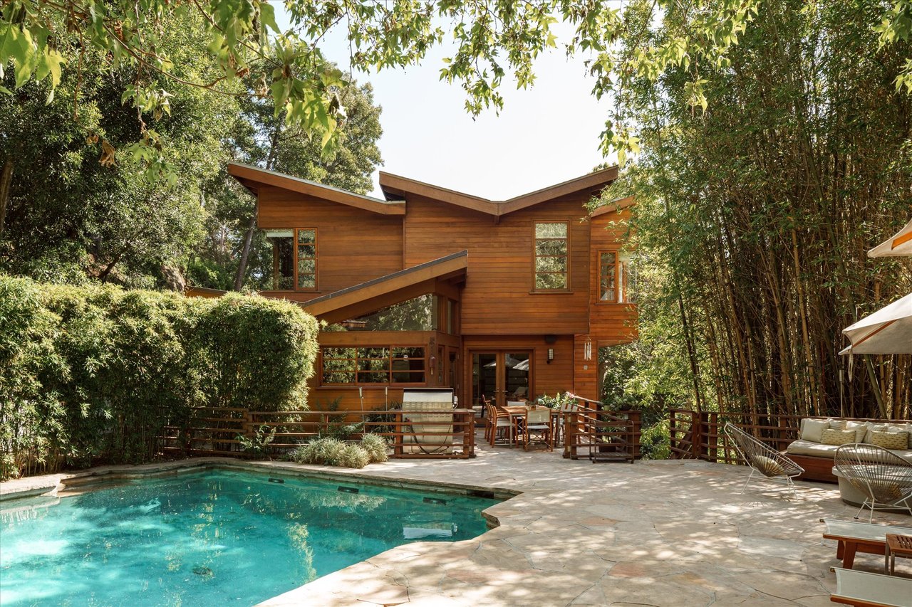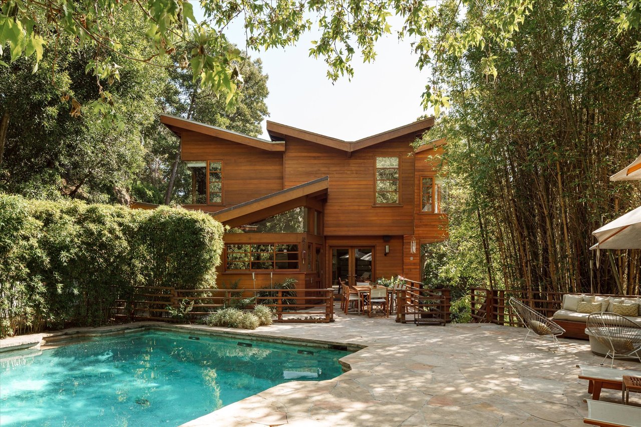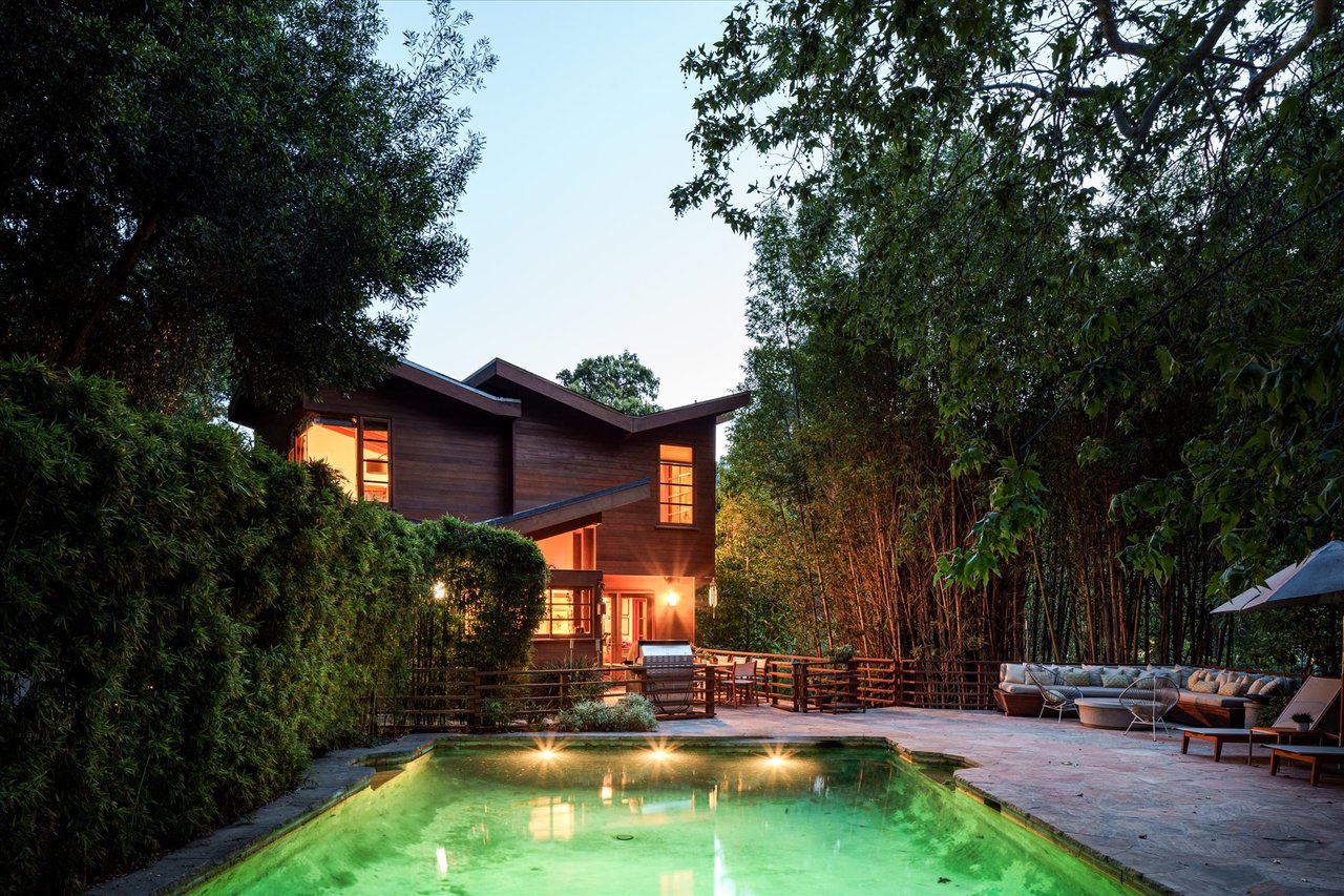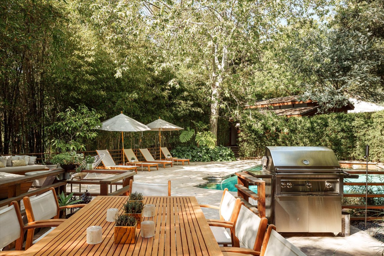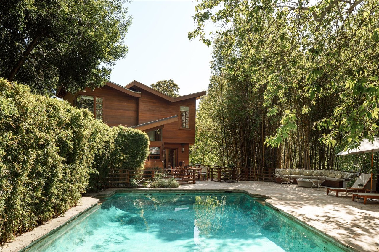 The property’s defining feature is its expansive, sprawling footprint—a verdant half-acre oasis that is a true rarity in the canyon. This significant acreage creates a "fortress of privacy," offering a transportive experience that makes the city feel a world away. Whether you are lounging by the shimmering resort-style pool or gazing through the windows at the towering greenery, the home evokes the feeling of a remote international villa, or So Cal Cool, offering total detachment from the urban bustle.