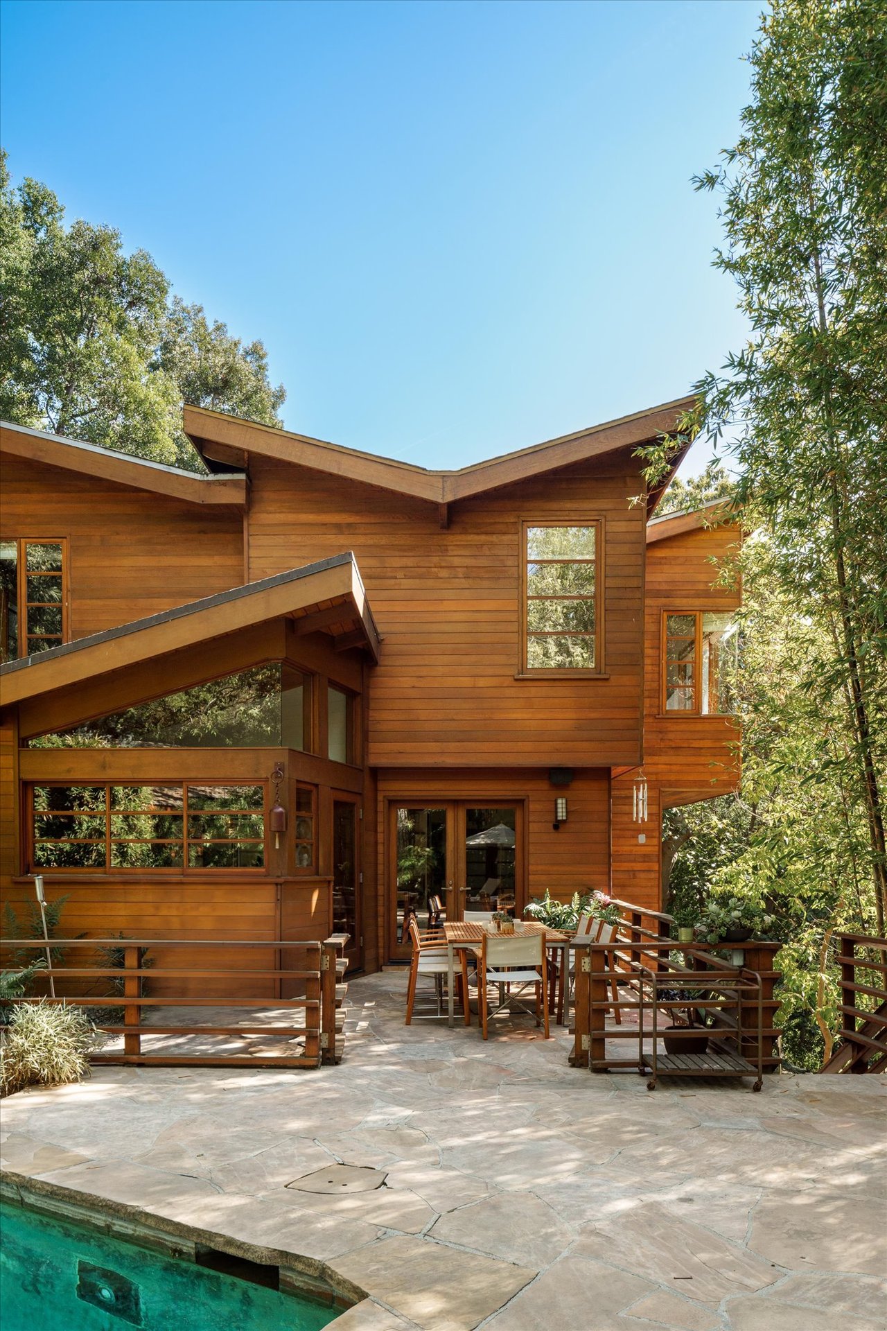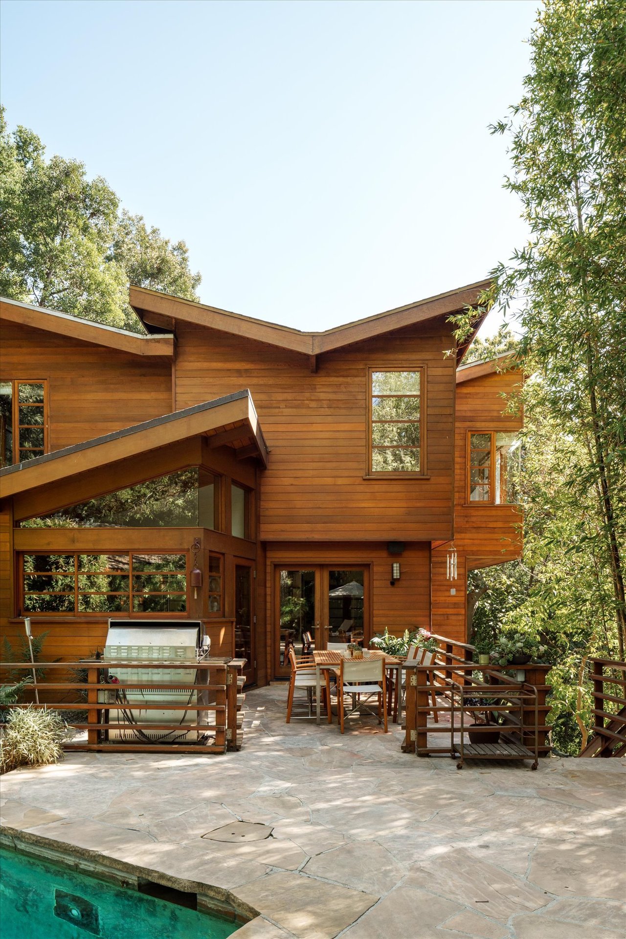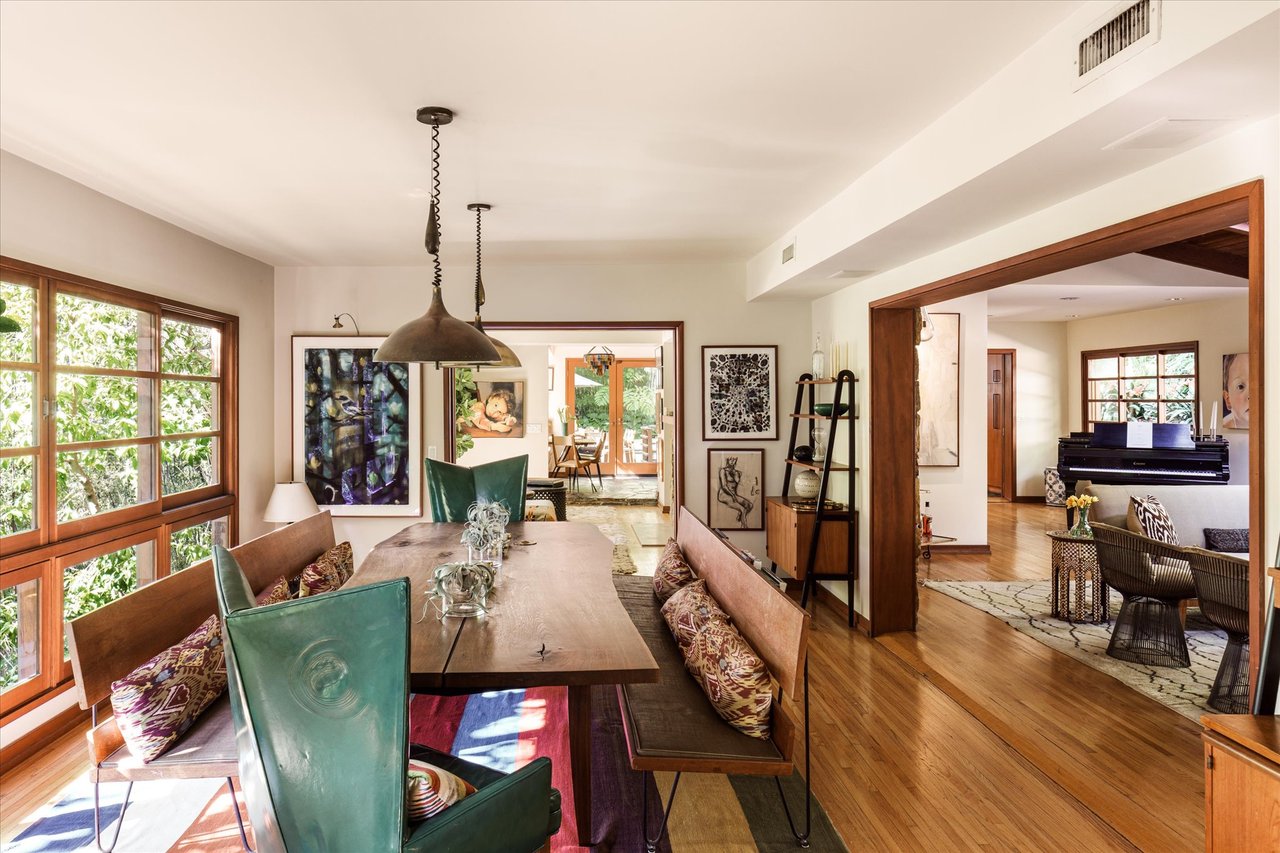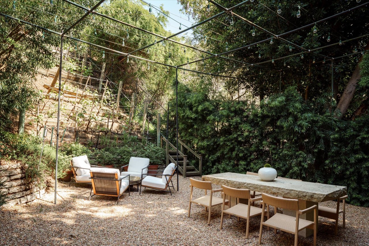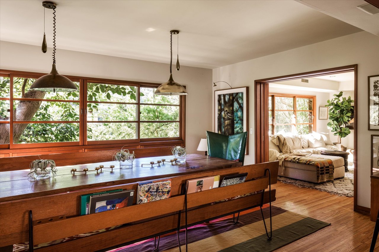 The property’s defining feature is its expansive, sprawling footprint—a verdant half-acre oasis that is a true rarity in the canyon. This significant acreage creates a "fortress of privacy," offering a transportive experience that makes the city feel a world away. Whether you are lounging by the shimmering resort-style pool or gazing through the windows at the towering greenery, the home evokes the feeling of a remote international villa, or So Cal Cool, offering total detachment from the urban bustle.