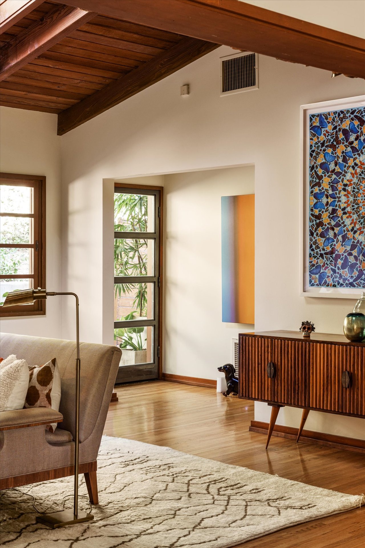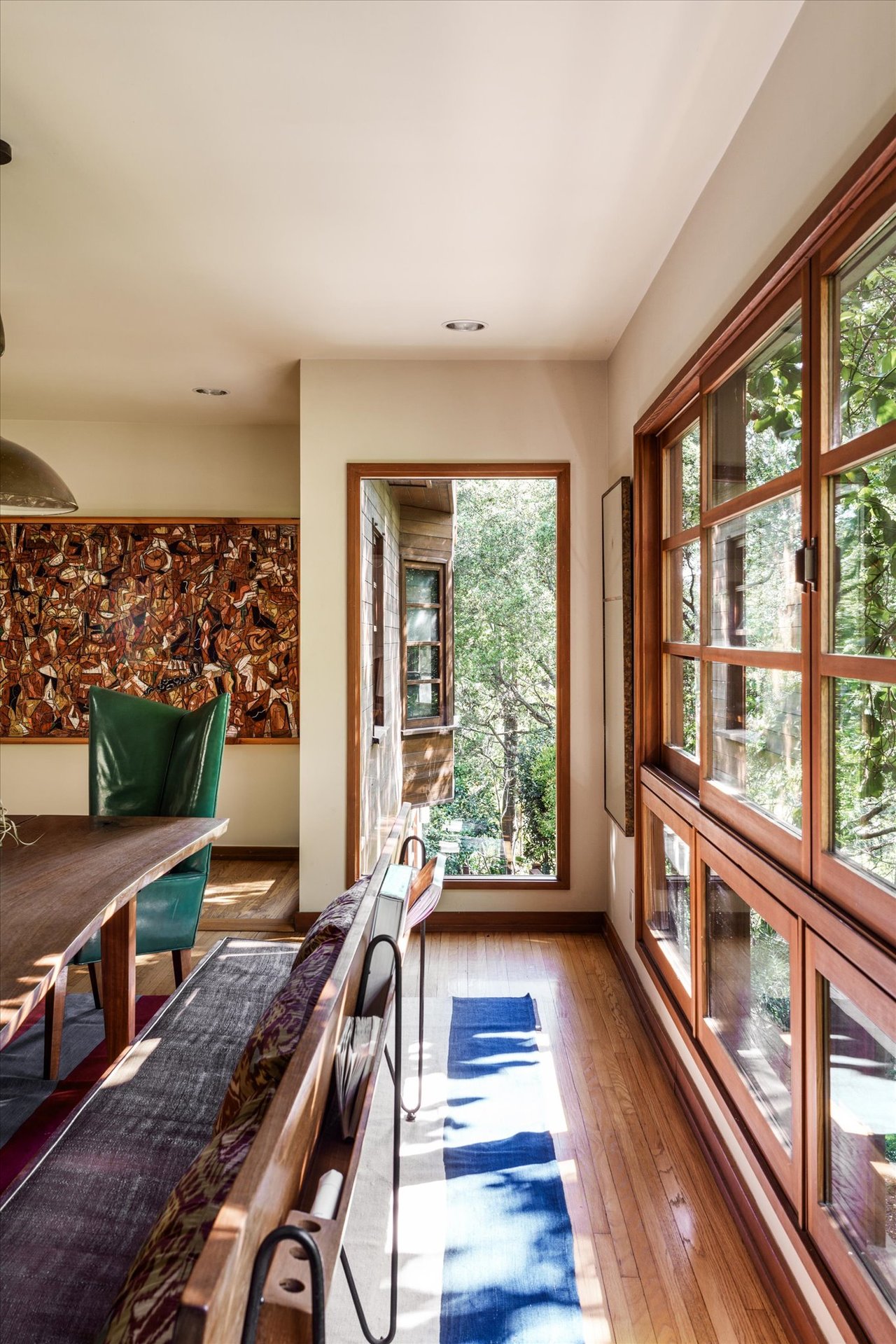 The Kanner-designed expansion ensures every room is bathed in natural light, blurring the lines between the organic exterior and the refined Mid-Century influenced interior.