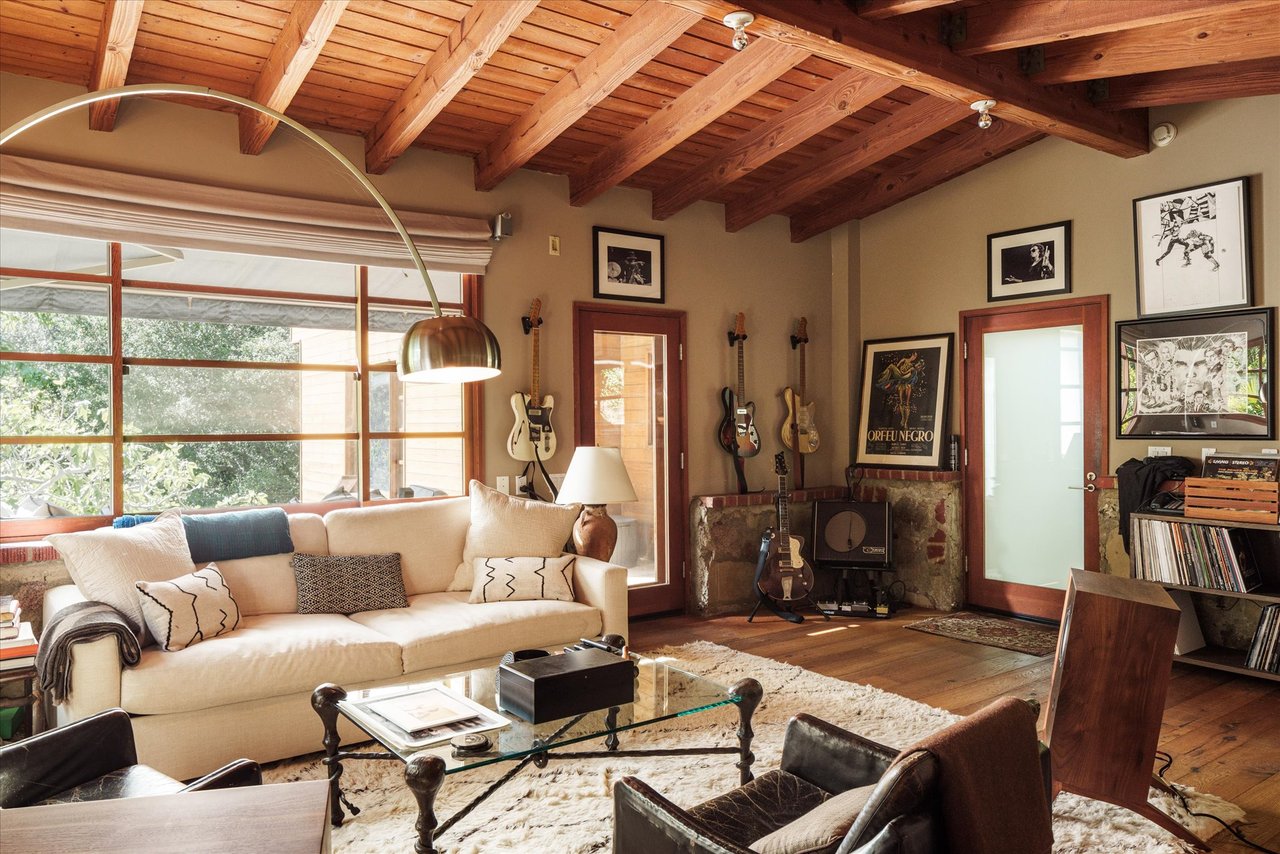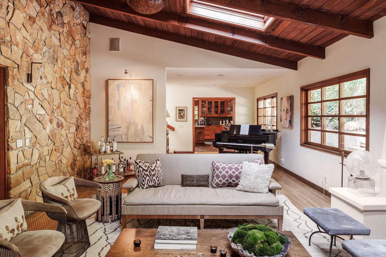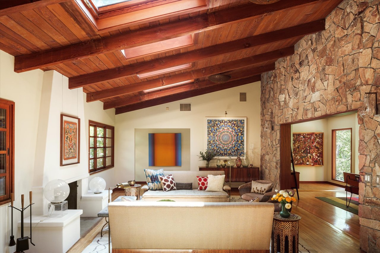 This residence is a piece of Los Angeles history, heavily influenced by the clean lines and organic integration of Mid-Century Modern aesthetics. Originally reimagined in 1991 as a creative refuge for JD Souther, the legendary songwriter for the Eagles. The home was later expanded in 2002 by the architectural luminary Stephen Kanner, FAIA. The result is a light infused canyon retreat that harmonizes with its surroundings through a sophisticated use of stone walls and fireplaces, and massive glass and wood sliding windows thoughtfully placed to frame the lush, forested vistas.