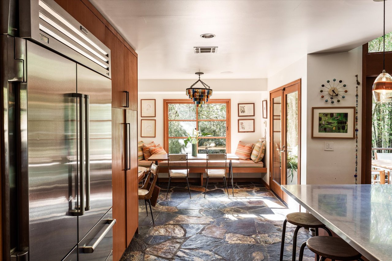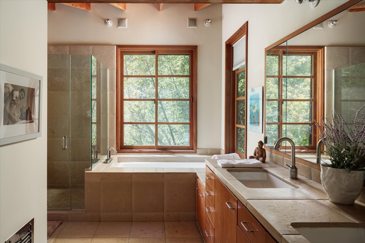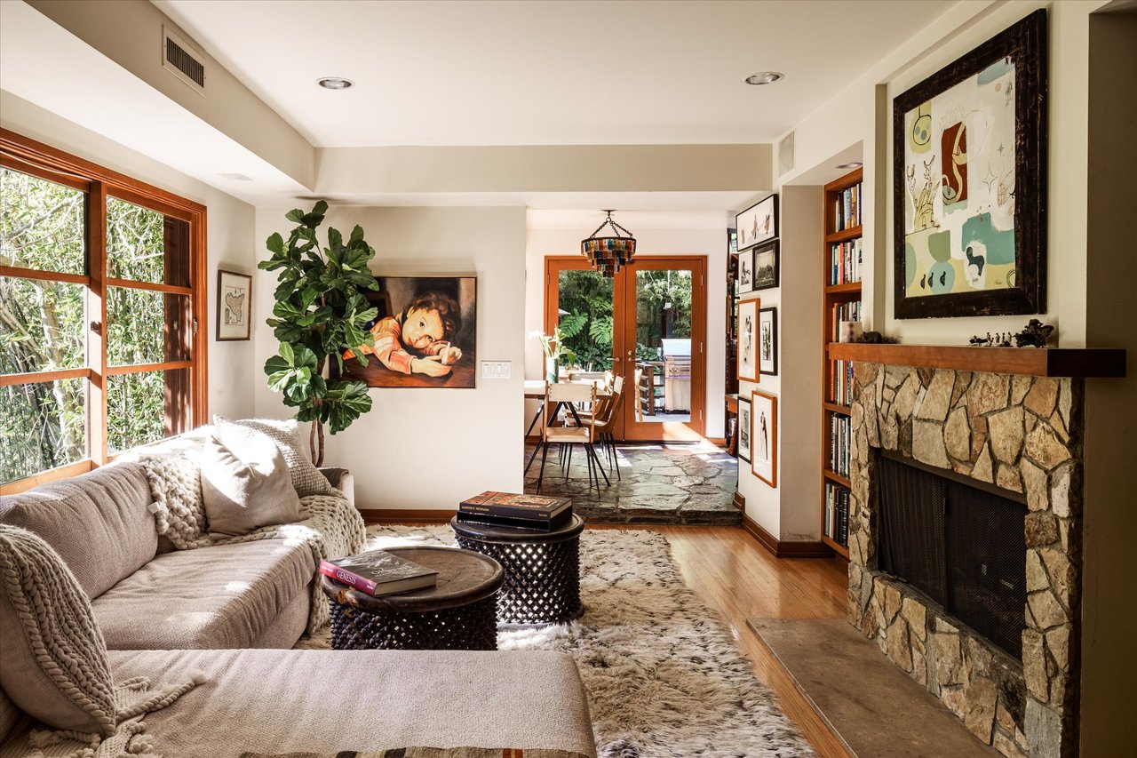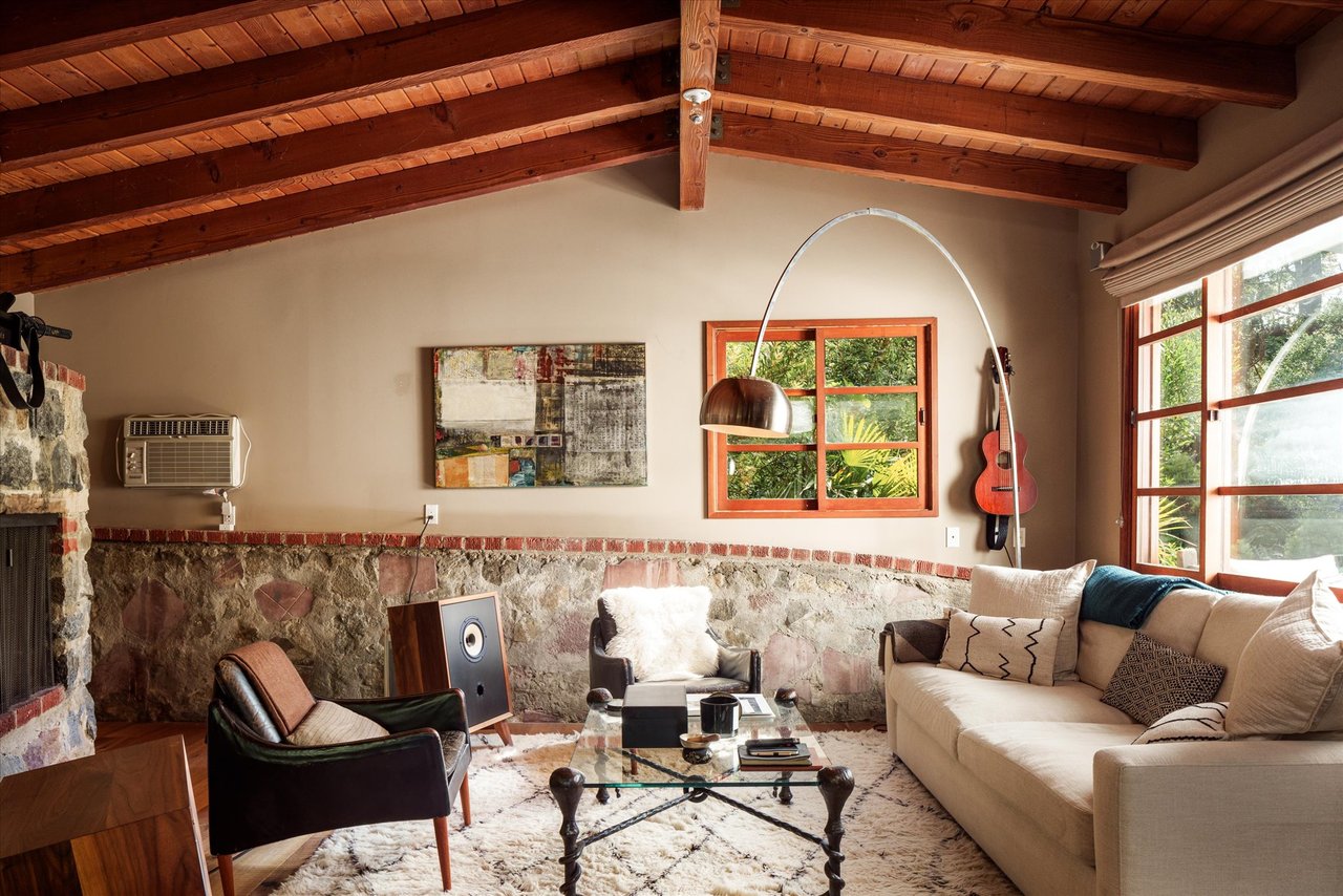 This residence is a piece of Los Angeles history, heavily influenced by the clean lines and organic integration of Mid-Century Modern aesthetics. Originally reimagined in 1991 as a creative refuge for JD Souther, the legendary songwriter for the Eagles. The home was later expanded in 2002 by the architectural luminary Stephen Kanner, FAIA. The result is a light infused canyon retreat that harmonizes with its surroundings through a sophisticated use of stone walls and fireplaces, and massive glass and wood sliding windows thoughtfully placed to frame the lush, forested vistas.