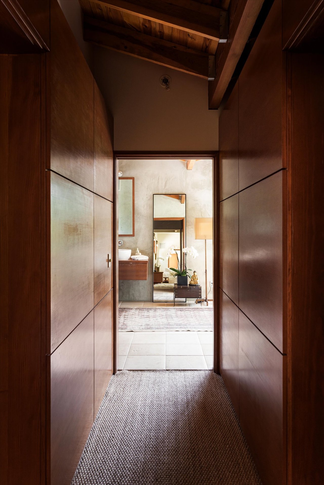 Inside, the home balances grand scale with intimate, artistic details.